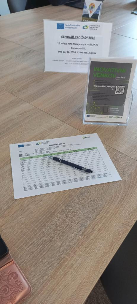 Fotodokumentace ze semináře k "26. výzvě MAS Naděje o.p.s. - IROP 20 - Doprava - III." ze dne 03. 02. 2026 v Lišnici